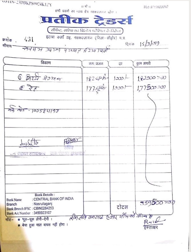 देखें बानगी के लिए बिलों के चित्र एवं समझें कार्य